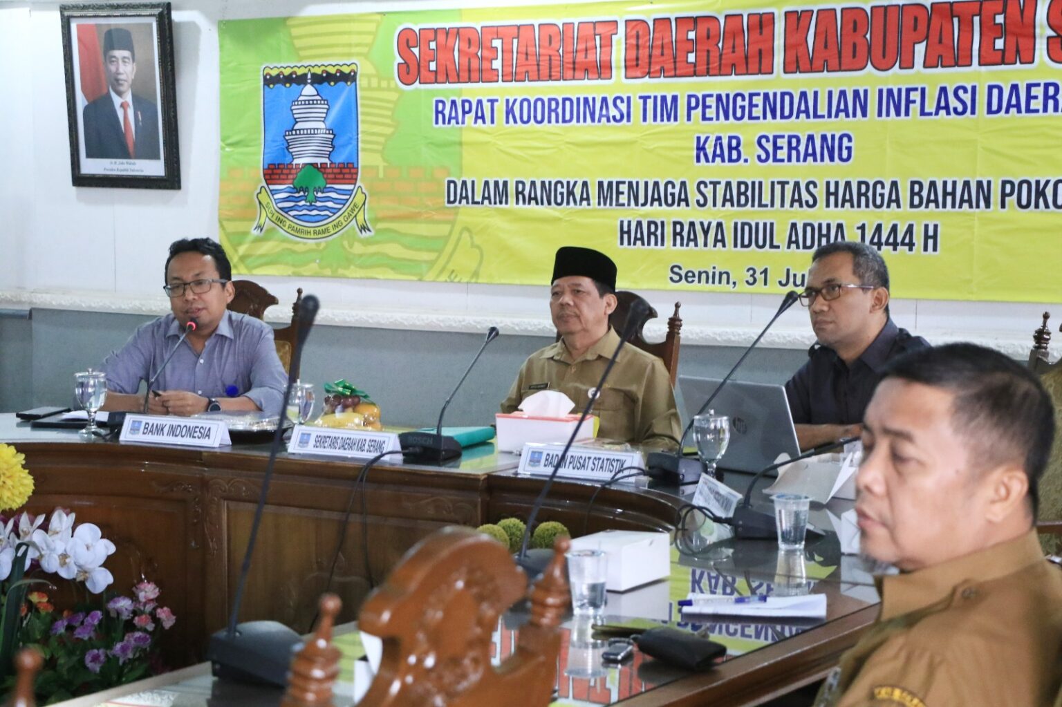 Sekda Kabupaten Serang Tubagus Entus Mahmud Sahiri mengatakan, Rapat Koordinasi TPID dilaksanakan untuk mengevaluasi inflasi pasca hari raya idul adha sebagai triwulan kedua di tahun 2023. Sesuai dengan laporan dari BPS, Bagian Perekonomian, Diskoumperindag, angka inflasi di Kabupaten Serang masih aman dibawah inflasi nasional. “Namun demikian kita harus tetap berupaya supaya ketersediaan bahan pokok di Kabupaten Serang ini stabil dan tidak mengalami inflasi,”ujar Entus.(*)