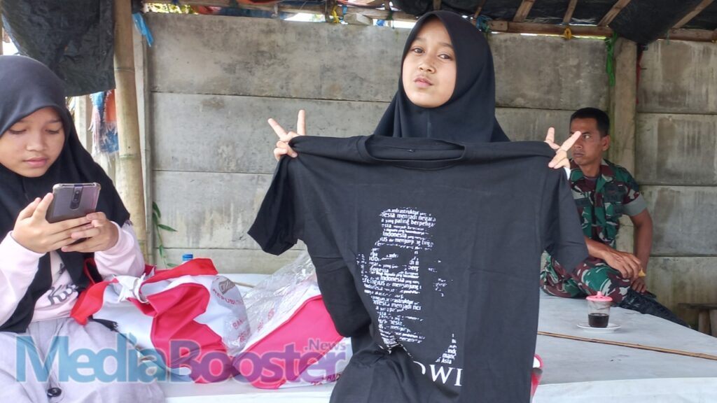 ” tujuannya mau liat pak jokowi, Senang sekali udh liat dan dapat baju dari pak Jokowi, terima kasih Pak Jokowi Love You lah,” Ujar Nindi warga Sindang Heula.