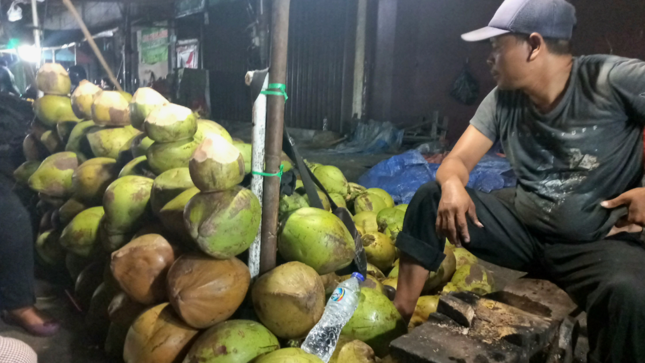 SERANG, Mediabooster.news – Dibalik Tumpukan Kelapa Muda di pasar lama ada dilema. Hal tersebut yang sedang dirasakan Nurdin (37) salah satu pedagang kelapa muda di kawasan Pasar lama jl. Maulana Hasan Kota Serang.