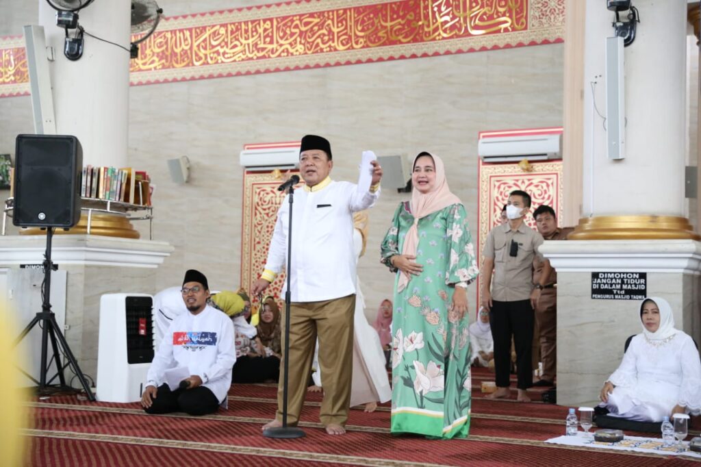 LAMPUNG, Mediabooster.news – Gubernur Lampung Arinal Djunaidi dan Ketua TP-PKK Provinsi Lampung Ibu Riana Sari Arinal bersama ribuan masyarakat menghadiri acara Pengajian Akbar Pemerintah Provinsi Lampung di Masjid Agung Taqwa Kota Metro, Senin (24/7/2023).
