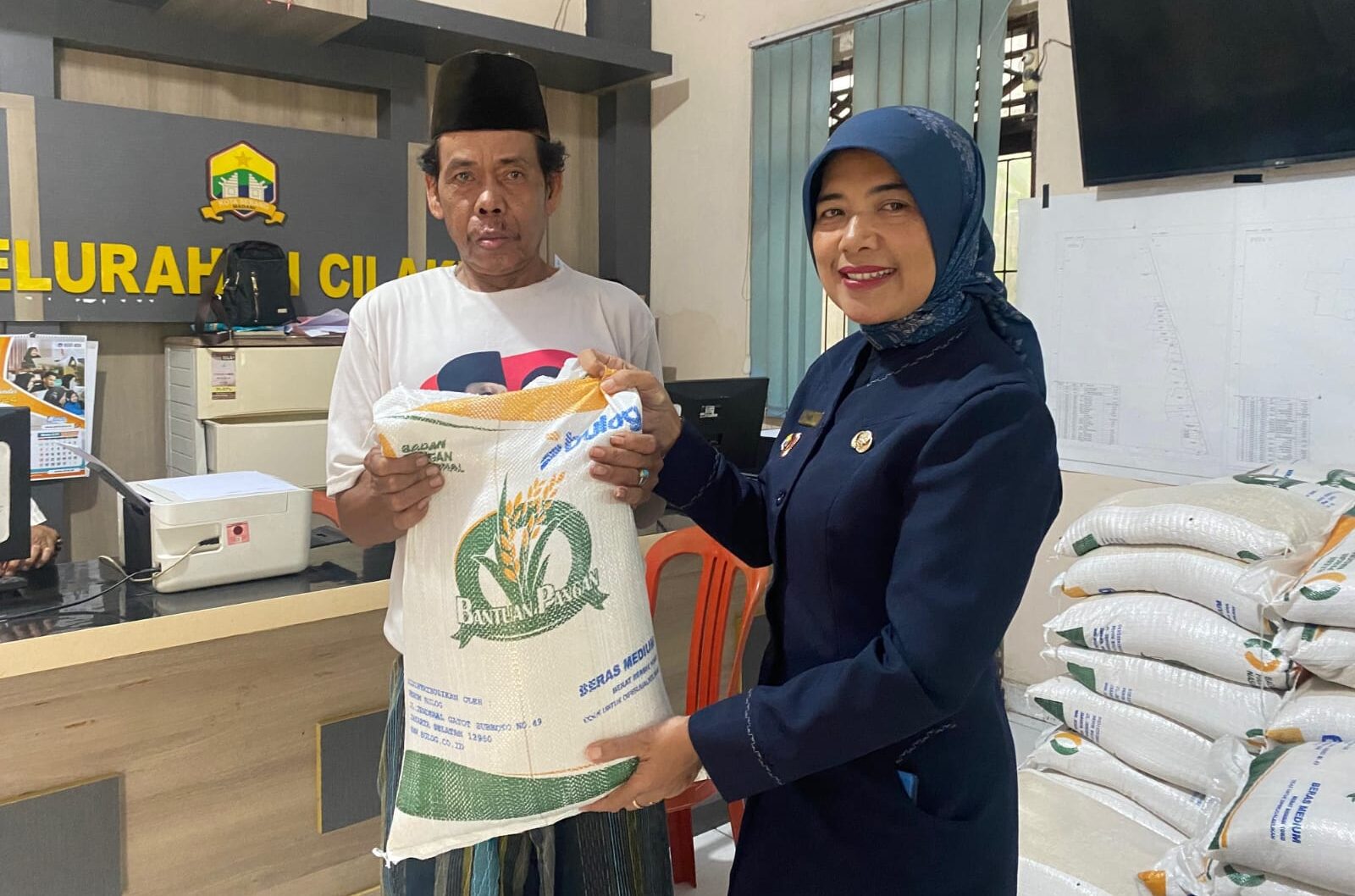 Dalam keterangannya, Lurah Cilaku Yati menuturkan, bantuan beras dengan berat 10 Kg tersebut merupakan realisasi program bantuan beras yang dicanangkan oleh Bulog.