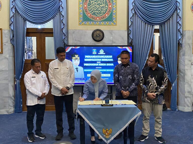 SERANG, Mediabooster.nws – Pemerintah Kabupaten (Pemkab) Serang resmi menjalin kerja sama strategis dengan PT Kurma Adzwa Farm (KAF) melalui Penandatanganan Kesepakatan Bersama (PKB) dan Perjanjian Kerja Sama (PKS) untuk pelaksanaan pemotongan 1.000 ekor hewan kurban secara serentak. Penandatanganan dilakukan oleh Bupati Serang Ratu Rachmatuzakiyah bersama Owner PT KAF, Ikhsan David Wijaya, di Pendopo Bupati Serang, Jumat (10/4/2026).