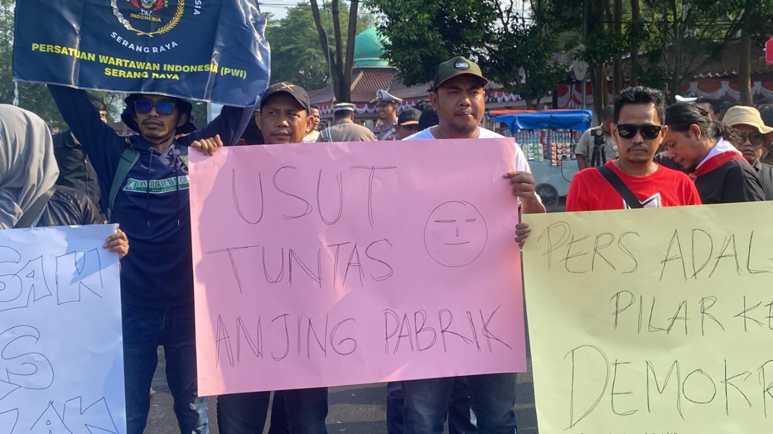 Aksi ini menjadi buntut dari pengeroyokan dua wartawan dan staf Kementerian Lingkungan Hidup, oleh oknum Brimob dan petugas keamanan PT Genesis Regeneration Smelting, di Kabupaten Serang pada Kamis, 21 Agustus 2025.